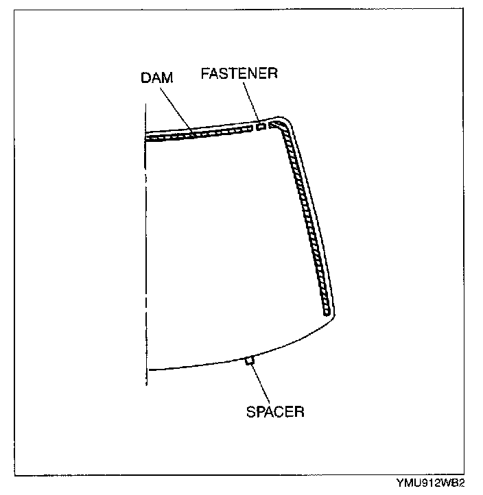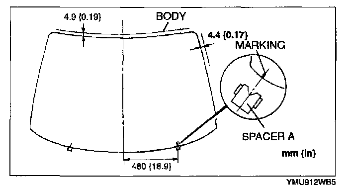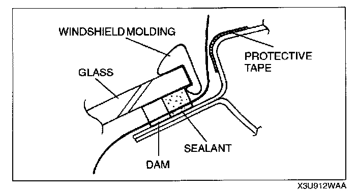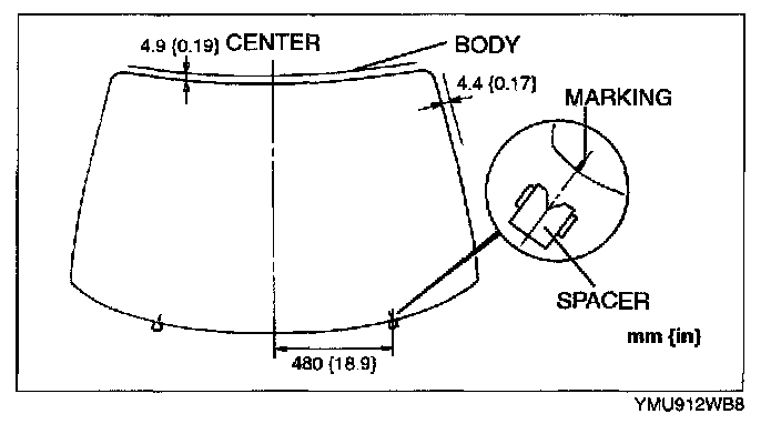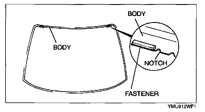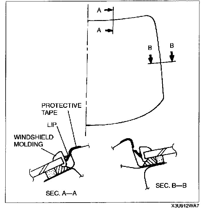 NOTE: Before removing the windshield from the body, mark the position of the windshield by affixing tape to the windshield and body panel.