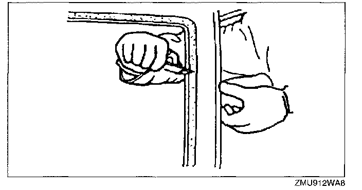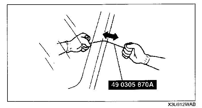 NOTE: For the areas of the sealant that are difficult to cut, use a SST (piano wire) and follow the procedure under "Reusing Windshield".