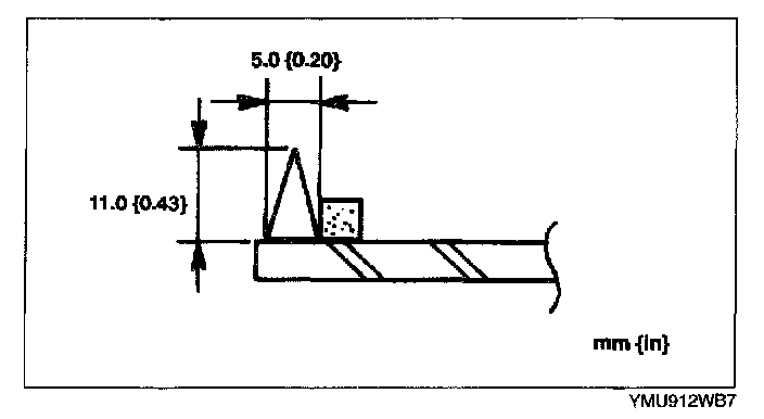 16. Verify that the gap along the upper edge is 4.9 mm {0.19 in} and side edge is 4.4 mm {0.17 in}.