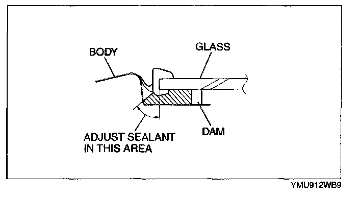 CAUTION: To prevent the sealant from cracking or the glass from being pushed out by air pressure if a door is closed, open all of the windows and leave them open until the sealant has hardened.