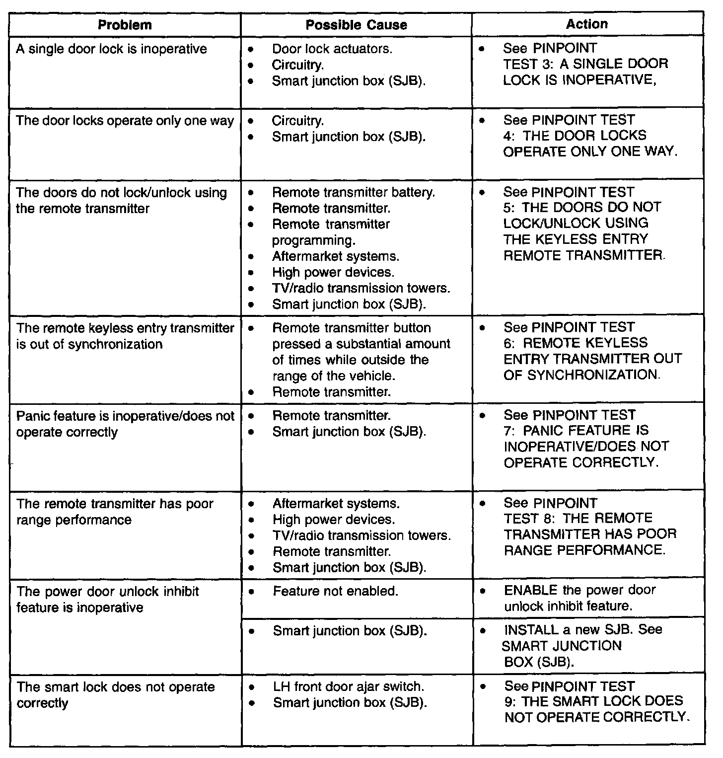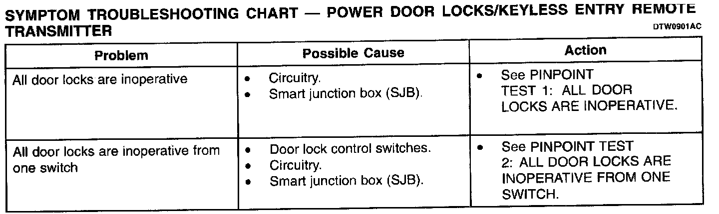 Symptom Troubleshooting Chart - Power Door Locks/Keyless Entry Remote Transmitter Part 2: