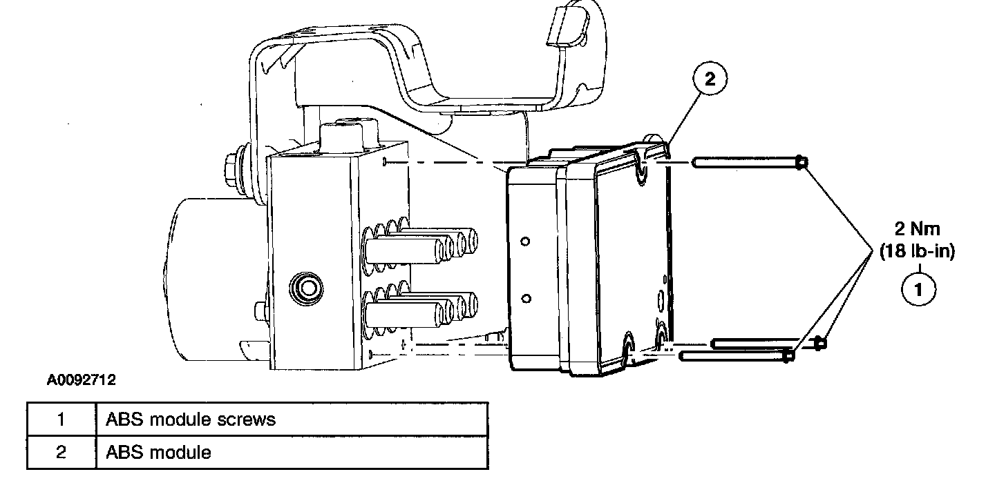 ^ When installing a new ABS module it must be configured (using vehicle as-built data) and calibrated. Follow the scan tool directions for the configuration and calibration procedures.