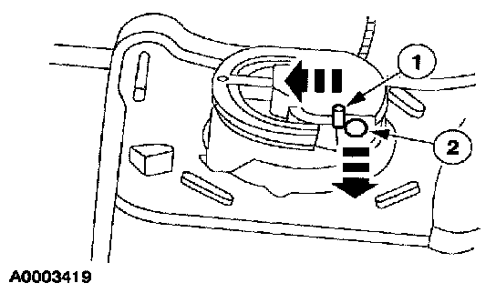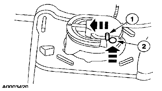 2. Press the locking tab and rotate the cruise control cable cap to remove.
