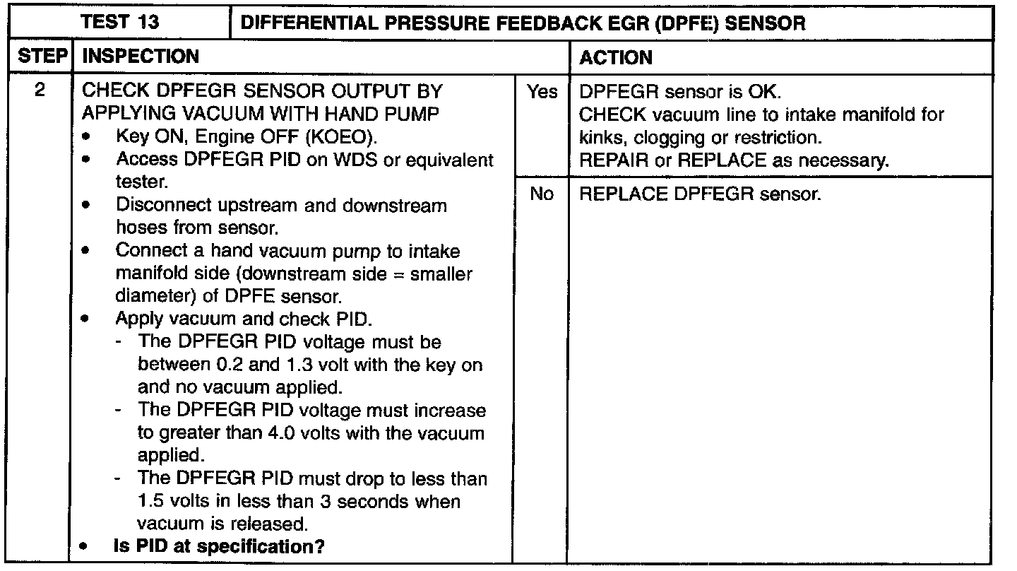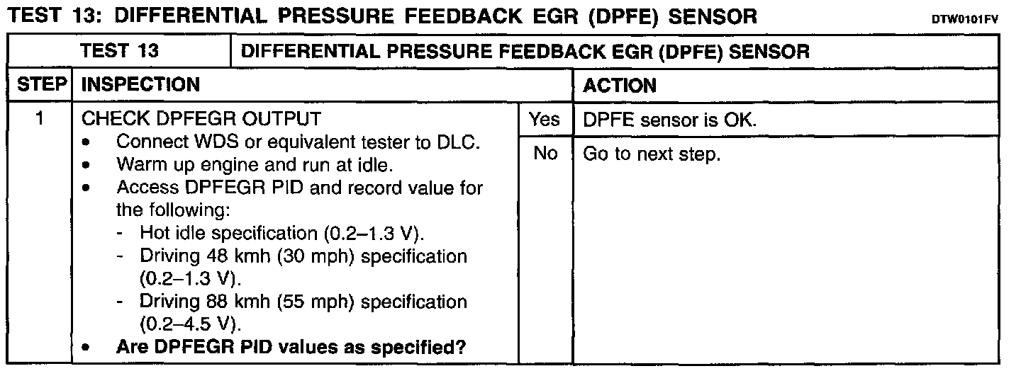 Test 13: Differential Pressure Feedback EGR (DPFE) Sensor