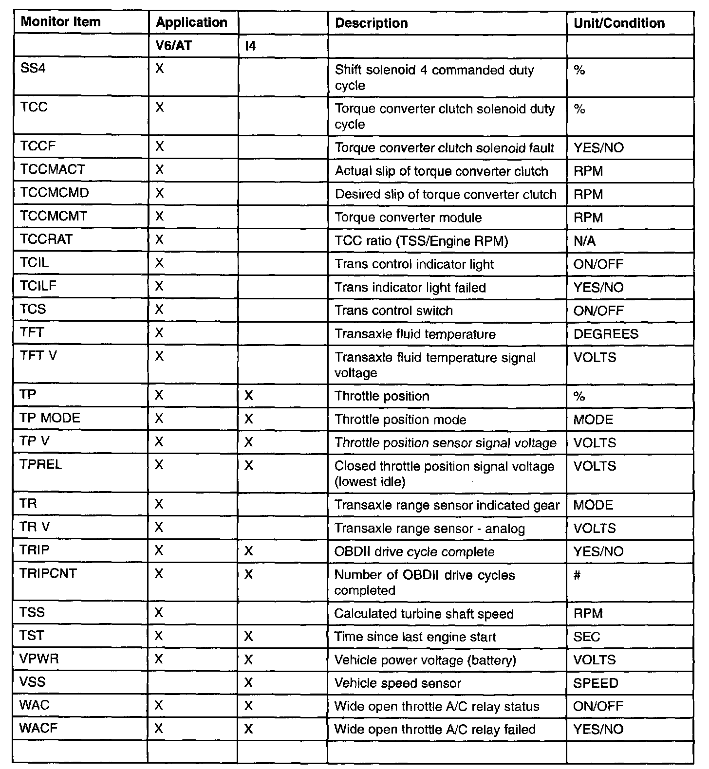 PID/Data Monitor Item Table Part 4: