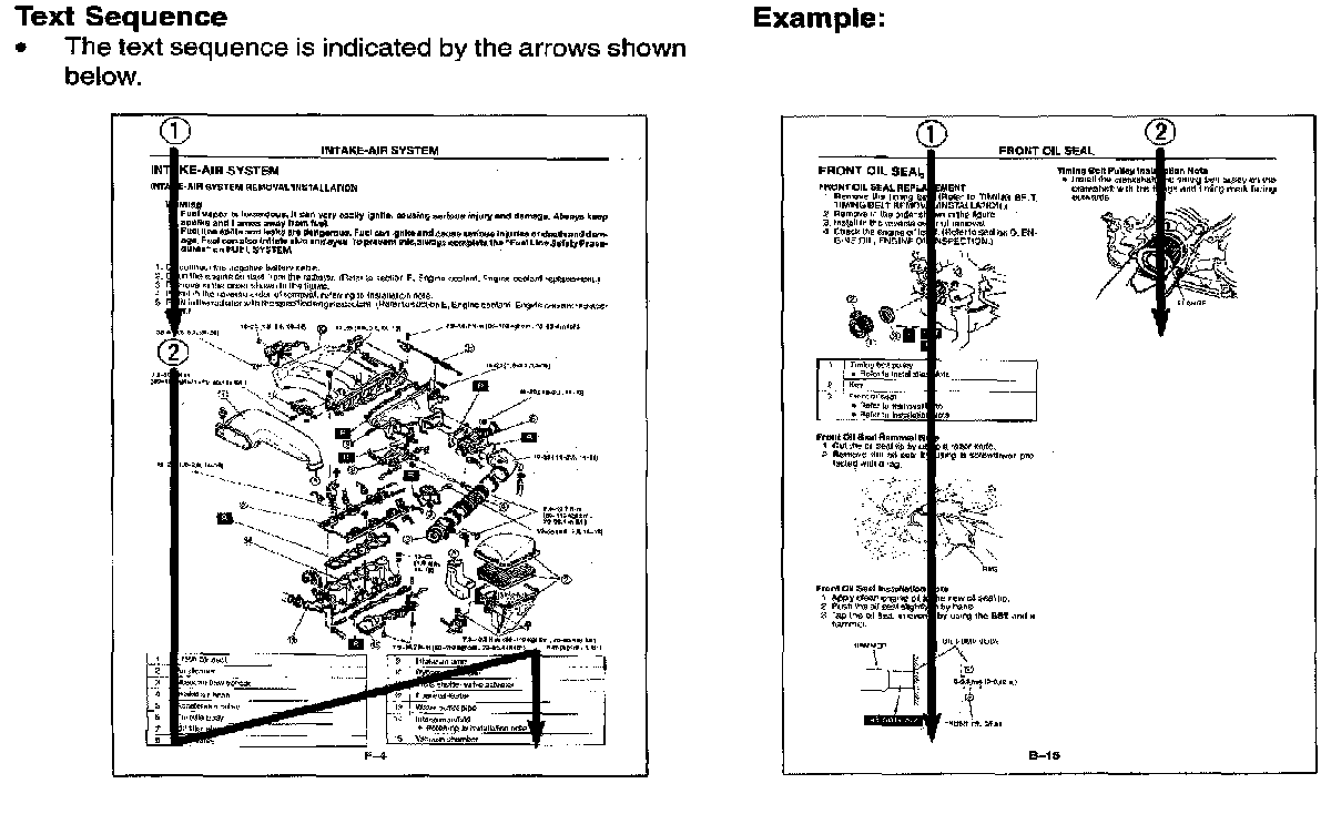 - The text sequence is indicated by the arrows shown.
