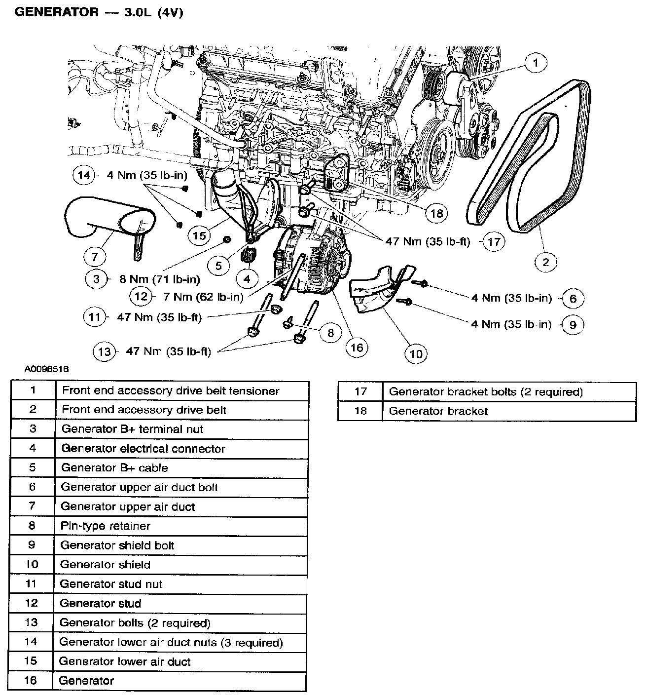 17. Position the generator aside and remove the 3 generator lower air duct nuts.
