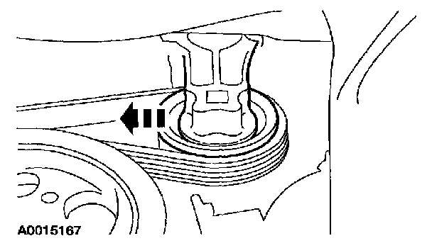6. Rotate the front end accessory drive tensioner counterclockwise and position the accessory drive belt aside.