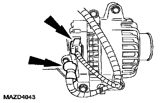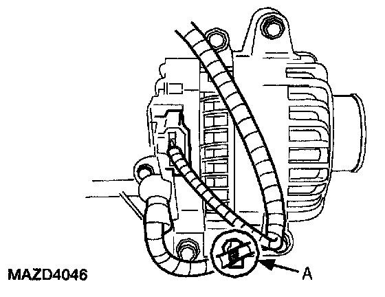 7. Position the generator B+ protective cover aside and remove the generator B+ terminal.