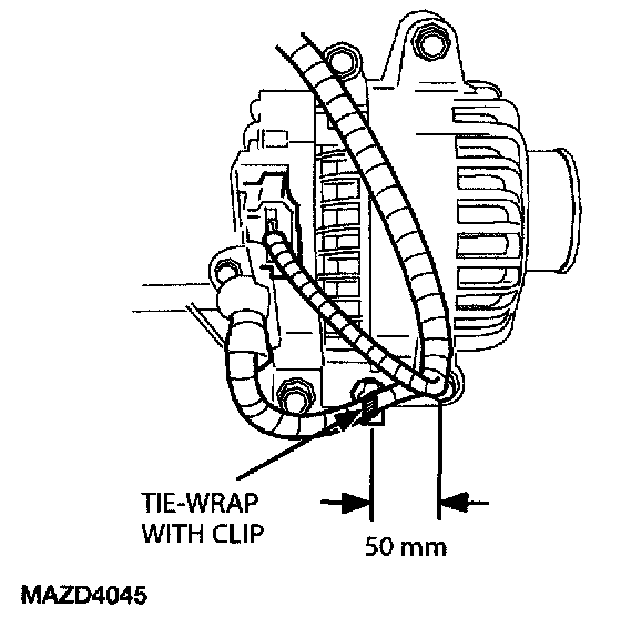 - A new harness tie-wrap with clip (P/N 1F20-61-147) must be used for installation and attached on the cable 50mm from the splice.
