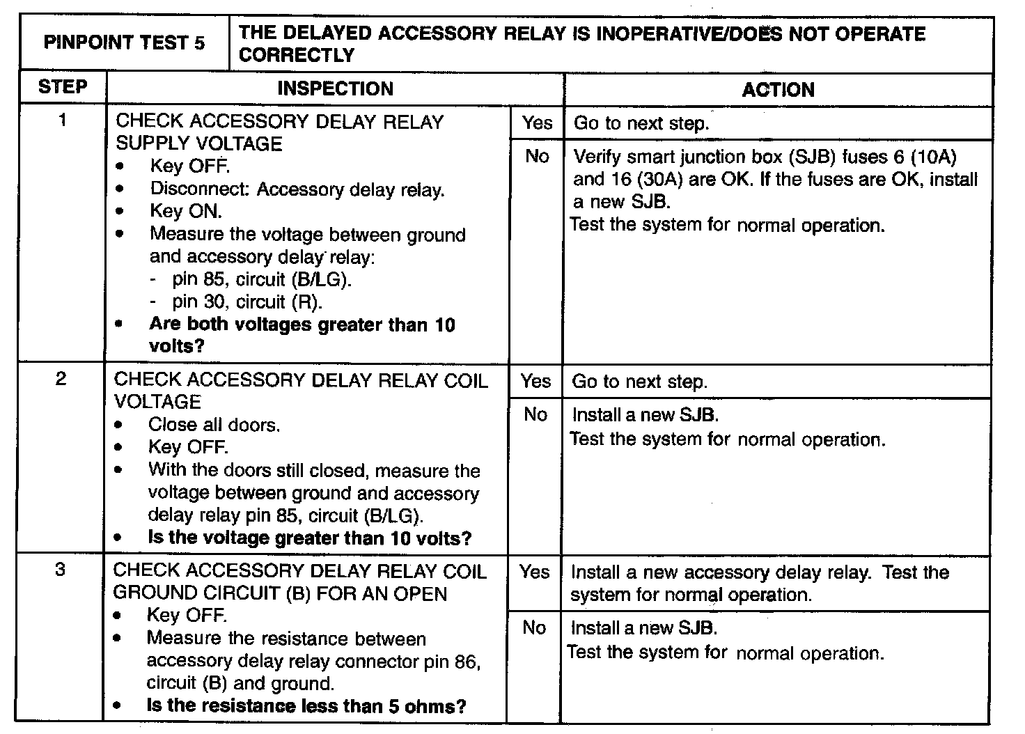 PINPOINT TEST 5: THE DELAYED ACCESSORY RELAY IS INOPERATIVE / DOES NOT OPERATE CORRECTLYNormal Operation
