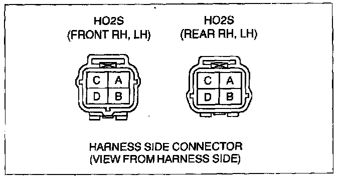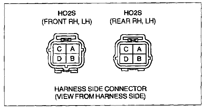 - HO2S (Front, LH) terminal D (harness-side) and power supply