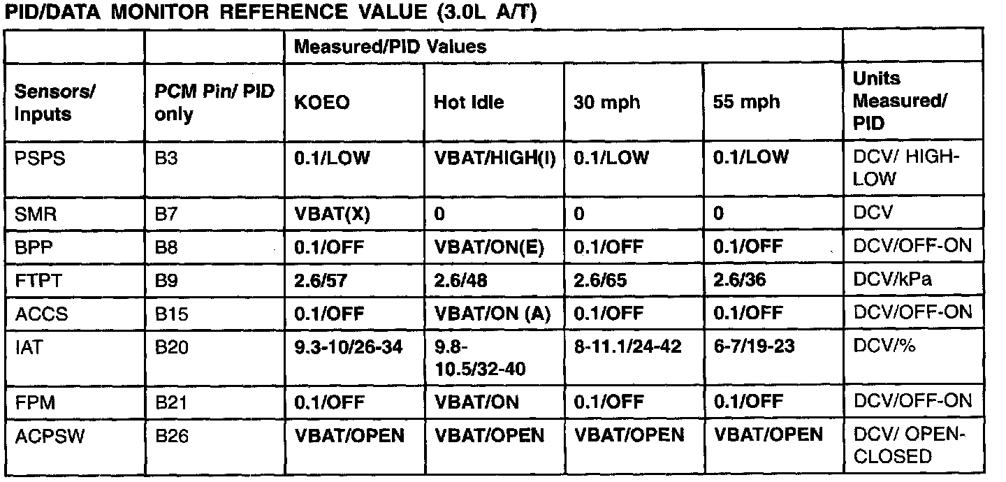 PID/DATA Monitor Reference Value (A/T) (Part 1):
