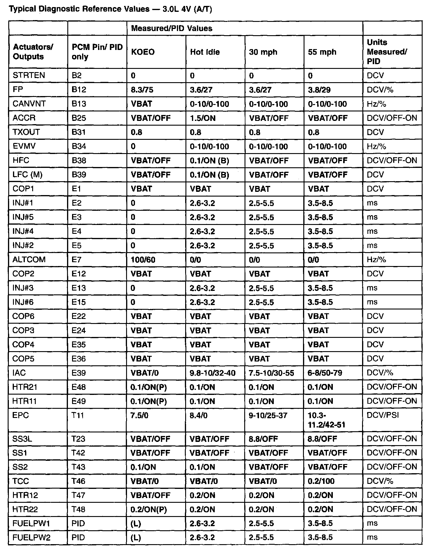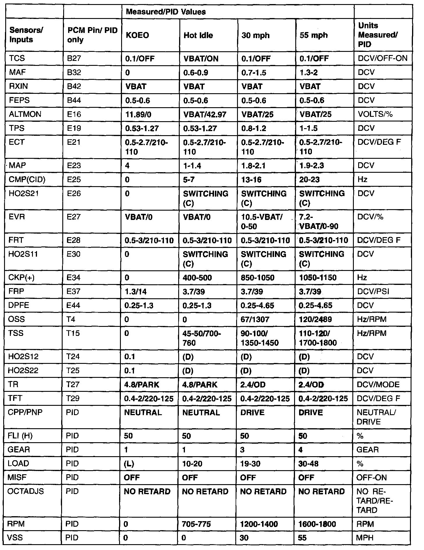 Generic OBD II Pid Values - (A/T):