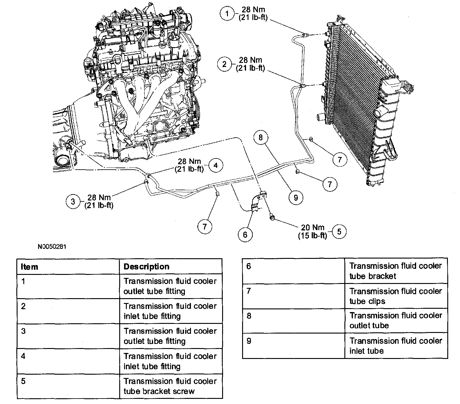 2. Connect the transmission fluid cooler inlet and outlet tubes to the transmission.
