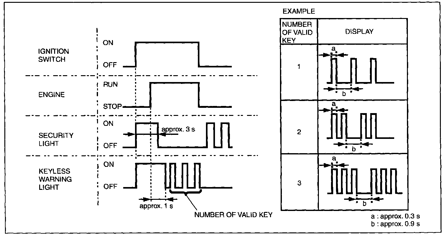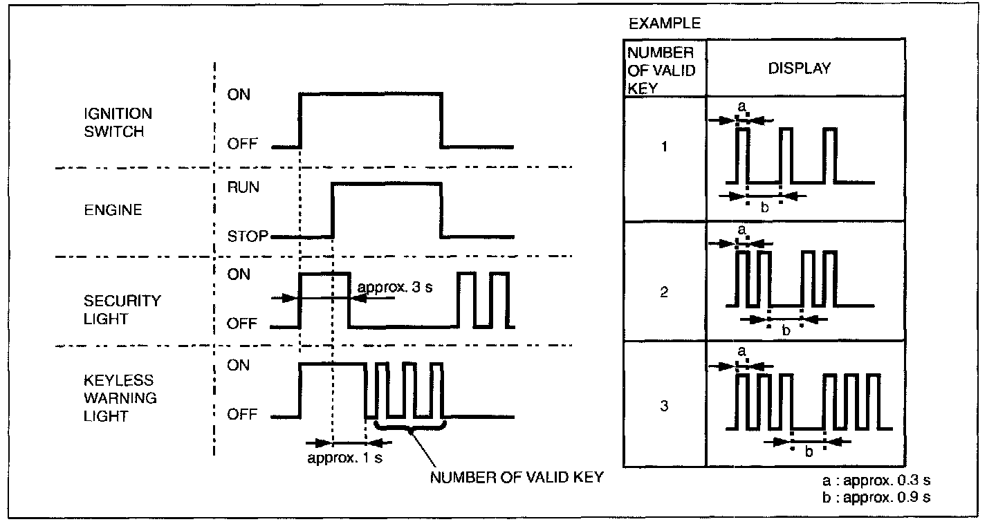 - From the point that ignition switch is turned to the ON position, the security light illuminates for approx. 3 s, and goes out.