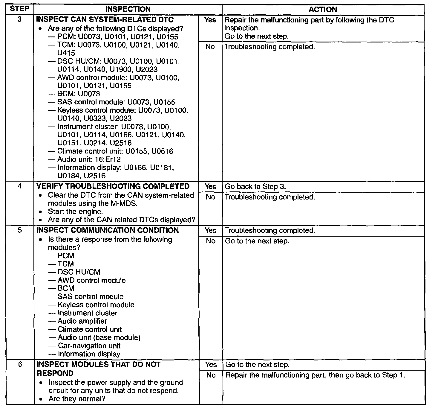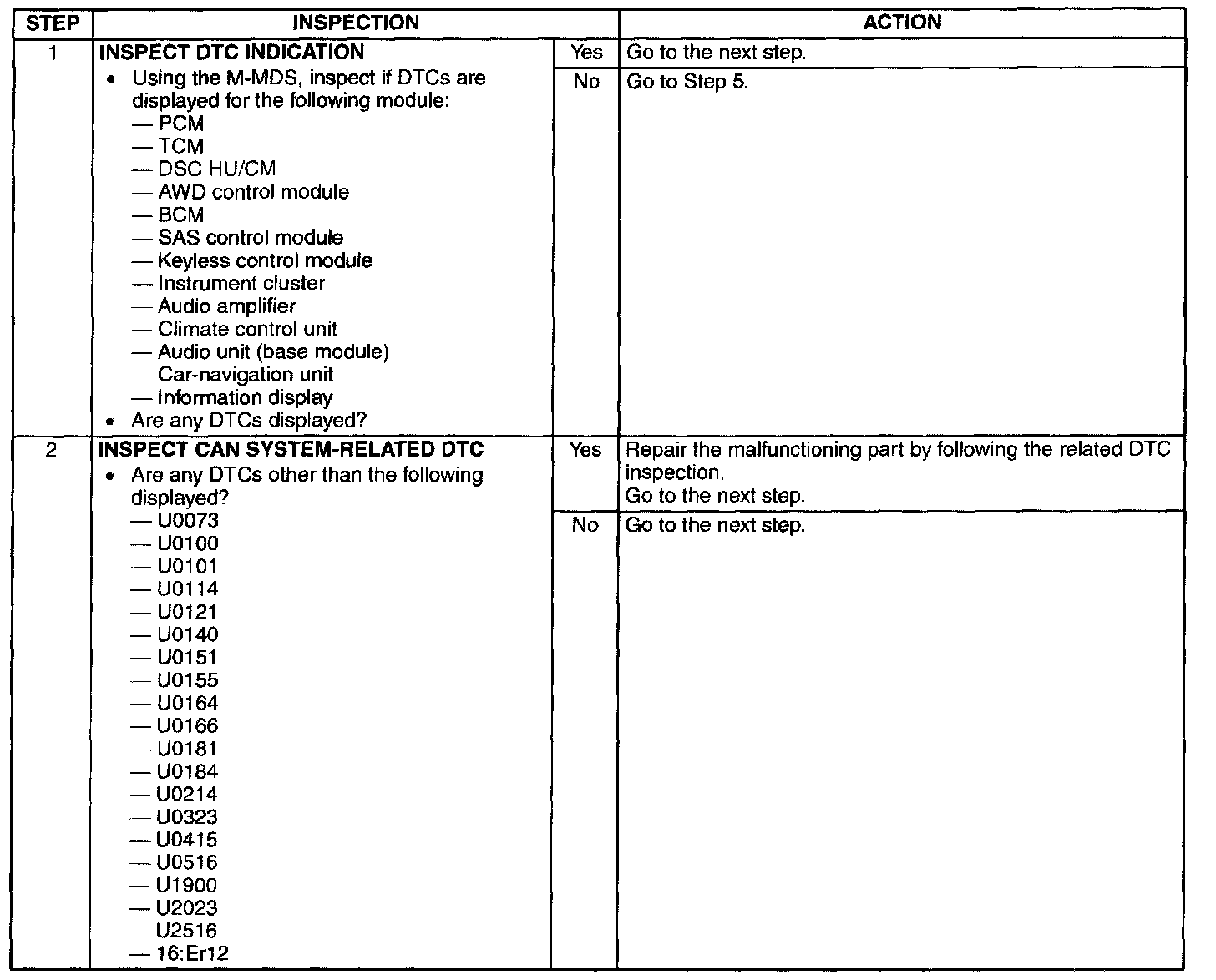 - If the controller area network (CAN) system is malfunctioning, read the DTCs of the following modules, using the M-MDS to determine the malfunctioning system.