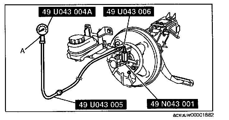 ^ Install the SST (49 N043 001) to the master cylinder using a commercially available flare nut wrench.