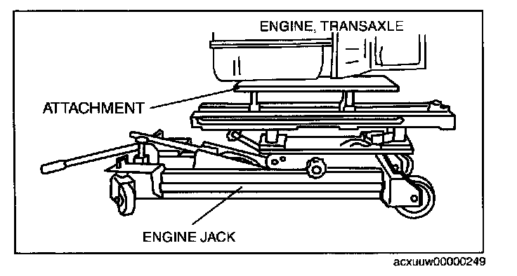 7. To firmly support the engine, first set the engine jack and attachment to the oil pan.