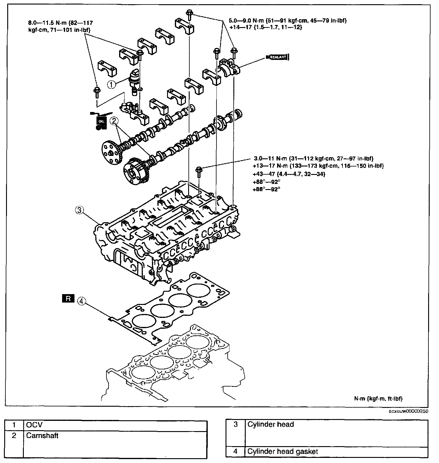 3. 43 - 47 Nm (4.4 - 4.7 kgf.m, 32 - 34 ft.lbf)