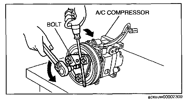 2. When installing a new A/C compressor body, replace the bolt.