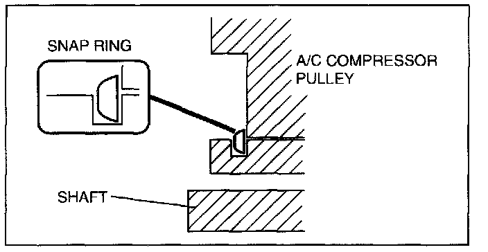 1. When installing a new pressure plate, A/C compressor pulley, stator, or A/C compressor body, replace the snap ring.