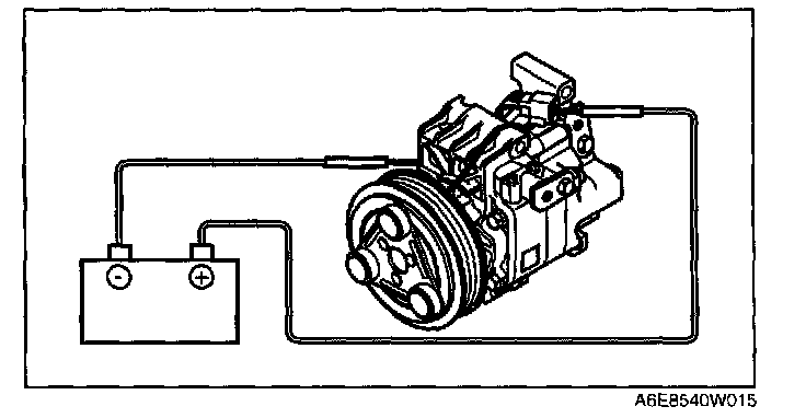 MAGNETIC CLUTCH INSPECTION1. Connect battery positive voltage to terminal A of magnetic clutch and ground to A/C compressor body.