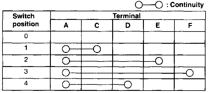 2. Inspect for continuity between the airflow volume control dial terminals using an ohmmeter.