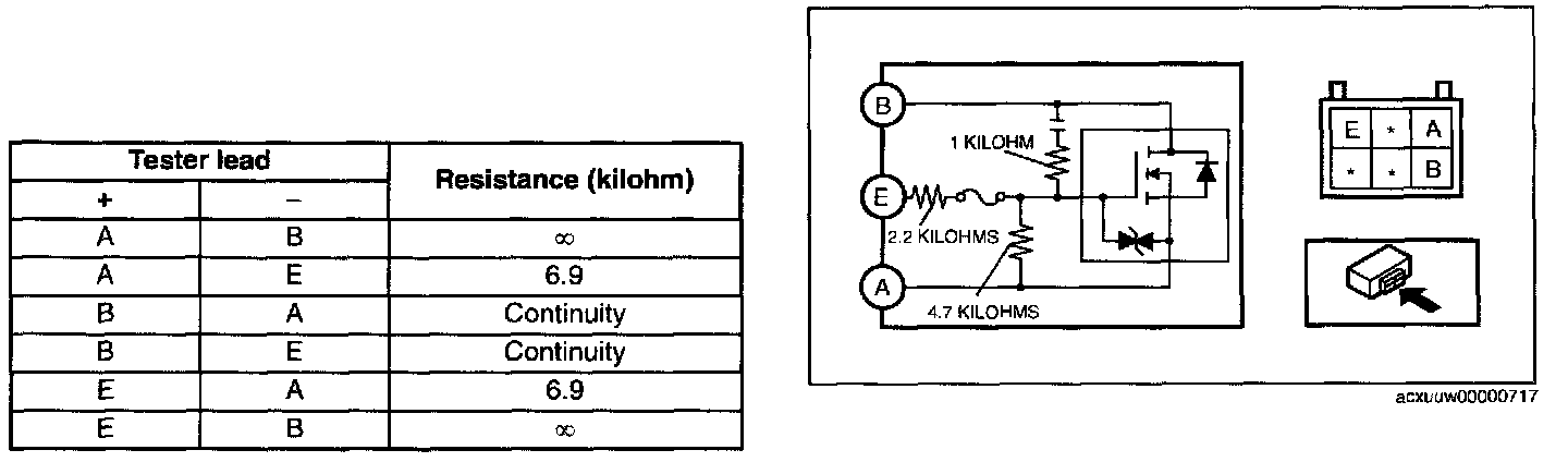 POWER METAL OXIDE SEMICONDUCTOR FIELD EFFECT TRANSISTOR (POWER MOS FET) INSPECTION1. Verify that the resistance between the terminals of the power MOS FET is as shown in the table.