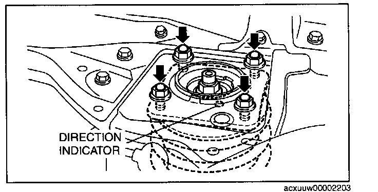 5. Push the shock absorber and coil spring component downward, and turn the direction indicator to the desired position.
