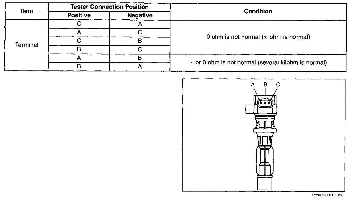 - If the measurement corresponds to the table, replace the ignition coil.