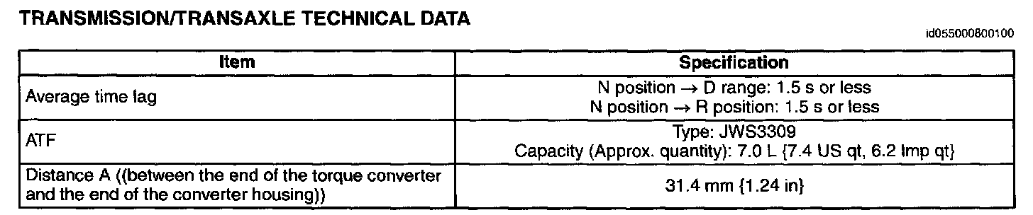 TRANSMISSION/TRANSAXLE TECHNICAL DATATransmission/Transaxle Technical Data: