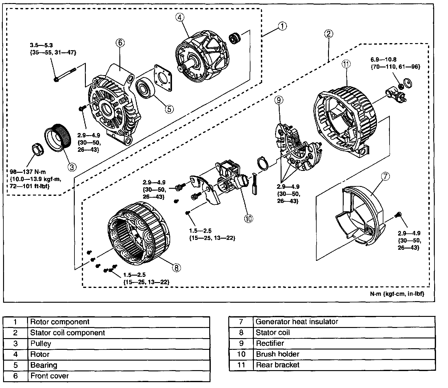 GENERATOR DISASSEMBLY/ASSEMBLY[L3 WITH TC]CAUTION: Melt the solder quickly, otherwise the diodes (rectifier) and regulator will be damaged by excessive heat.