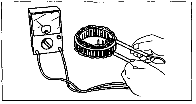 2. Verify that there is no continuity between the stator coil leads and core using a tester.