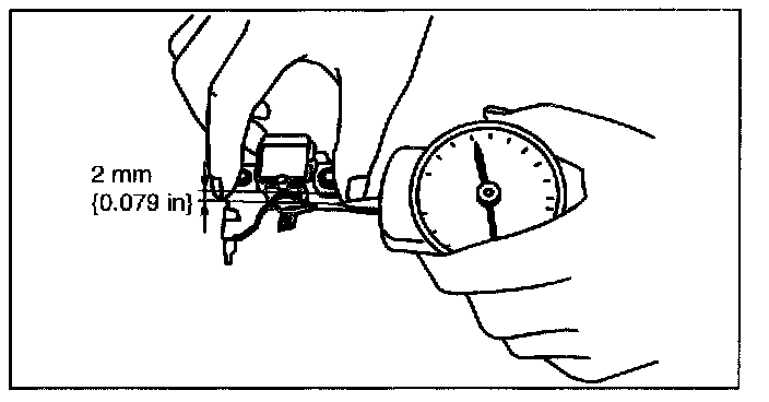 2. Read the spring pressure gauge at the brush tip projection of 2 min {0.079 in}.