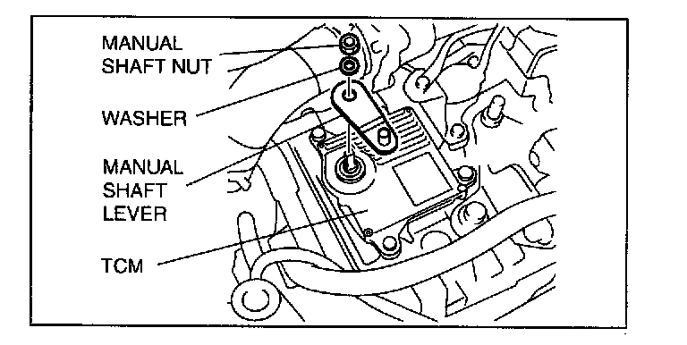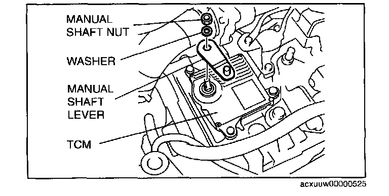 ^ Do not use an impact wrench. Hold the manual shaft lever when removing the manual shaft nut, or the transaxle may be damaged.