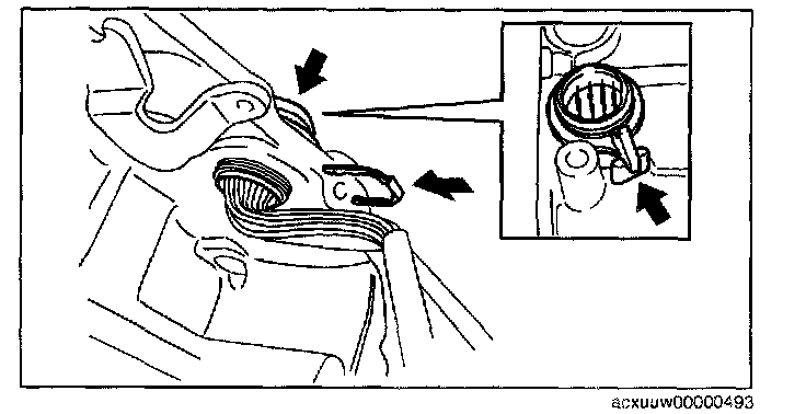 ^ A hot transaxle and ATF can cause severe burns. Turn off the engine and wait until they are cool before replacing the ATF.