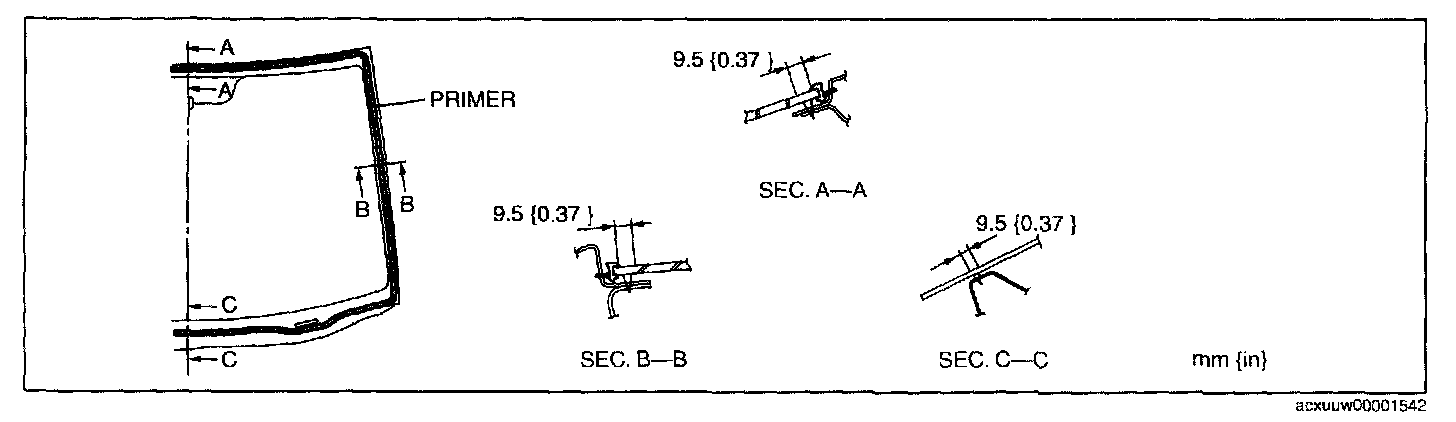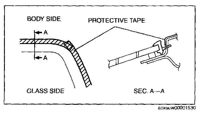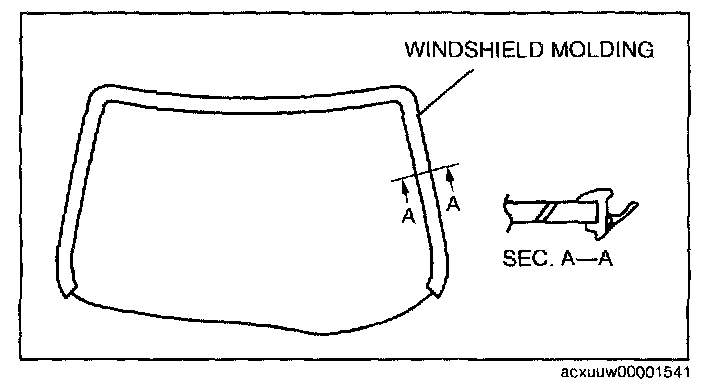 NOTE: Before removing the windshield from the body, mark the position of the windshield by affixing tape to the windshield and body panel.