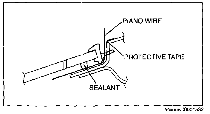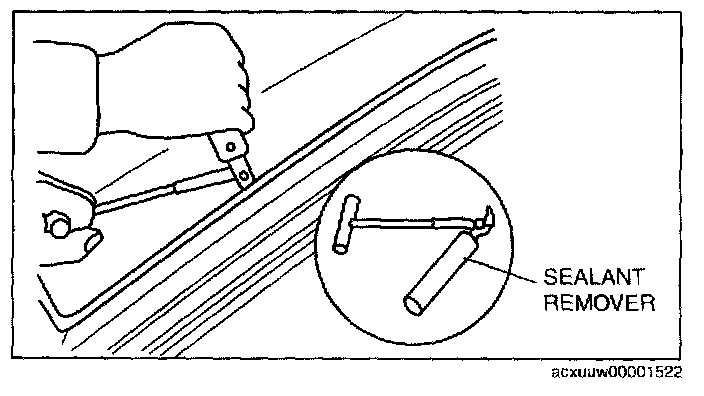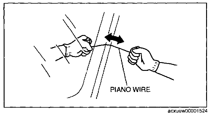 NOTE: For the areas of the sealant that are difficult to cut, use the piano wire and follow the procedure under "Reusing Windshield".