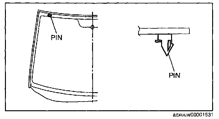 NOTE: Before removing the pin from the windshield glass, place an alignment mark on the windshield.