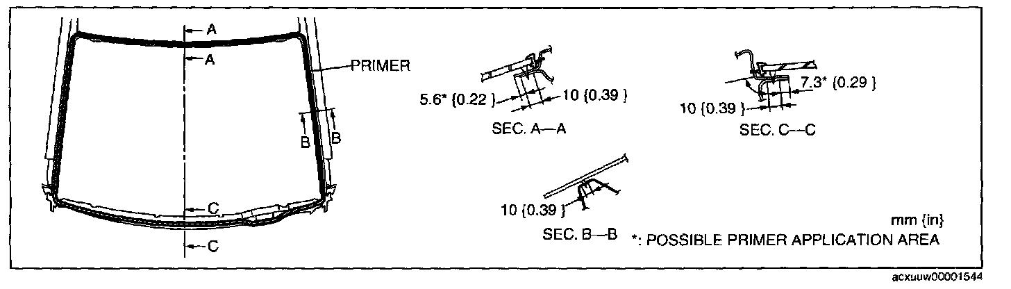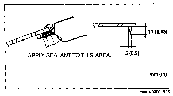 8. If the sealant has come off completely in any one place, apply some primer after degreasing, and allow it approx. 30 min to dry. Then apply 2 mm (0.08 in) thickness of new sealant.