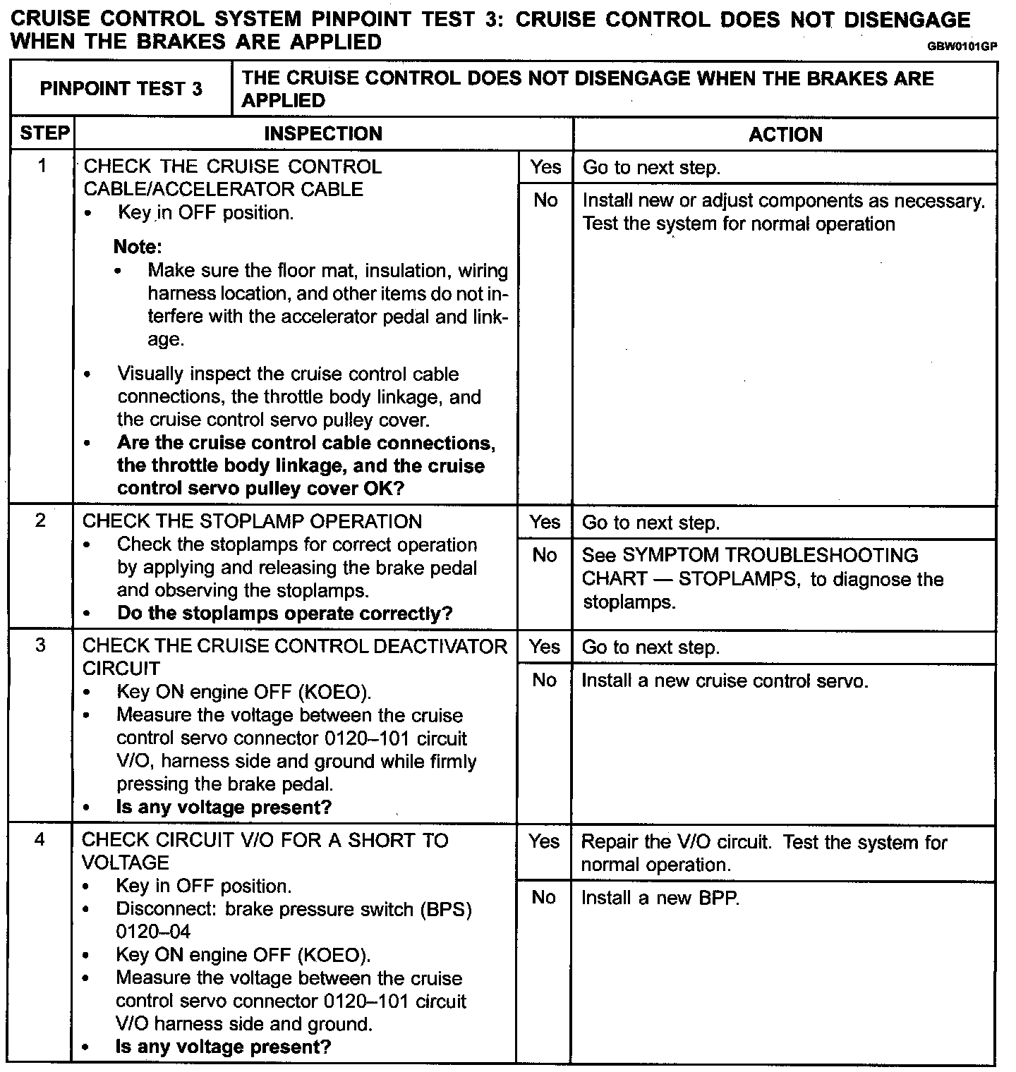 Pinpoint Test 3: Cruise Control Does Not Disengage When Brakes Are Applied