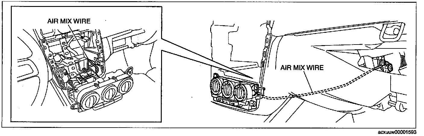 1. Pass air mix wire through the following routes then connect to A/C unit. (Manual air conditioner)