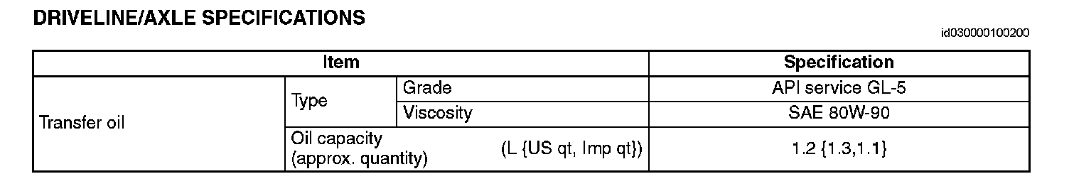 DRIVELINE/AXLE SPECIFICATIONS