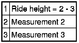 5. Subtract measurement 3 from measurement 2 to obtain the front ride height.