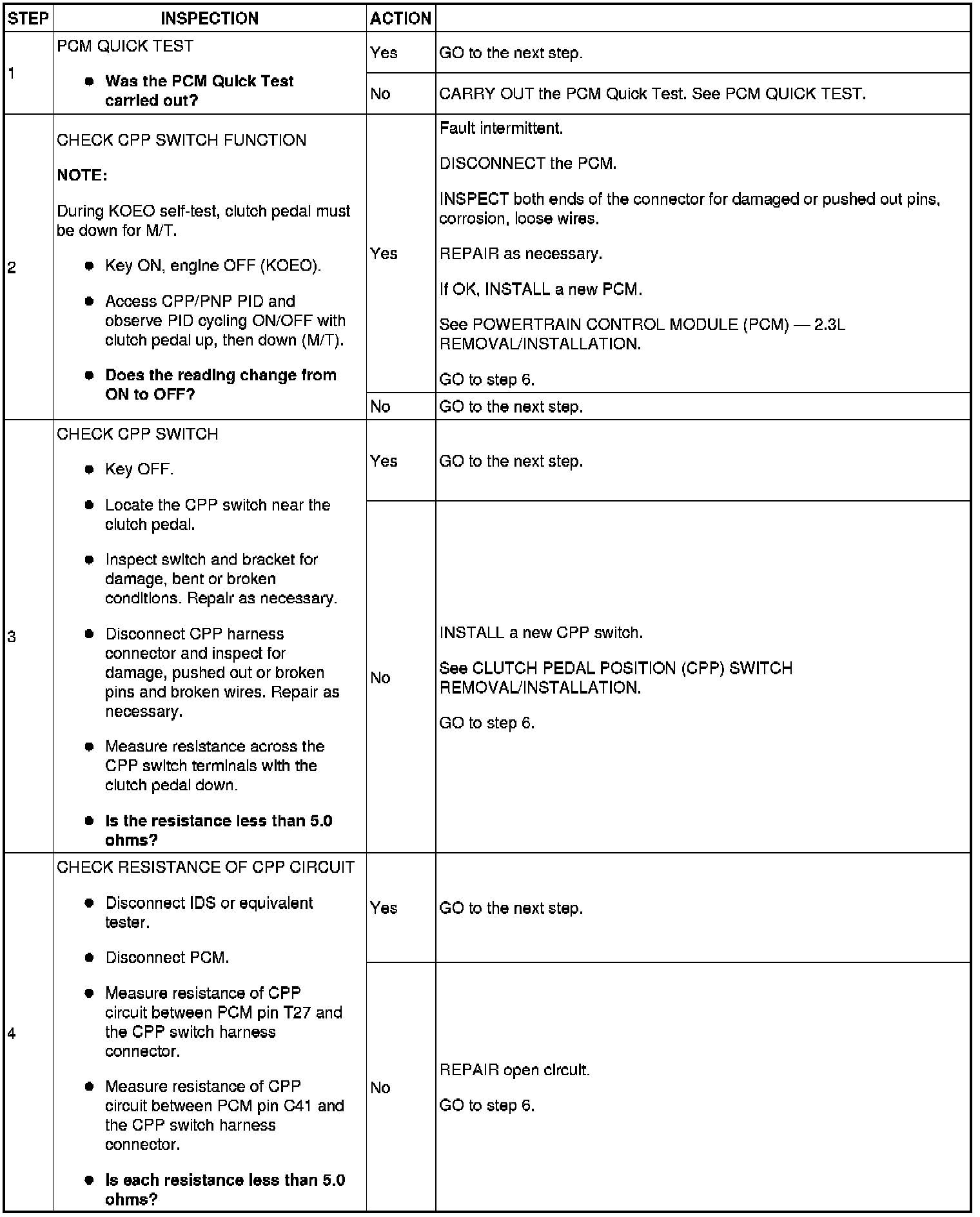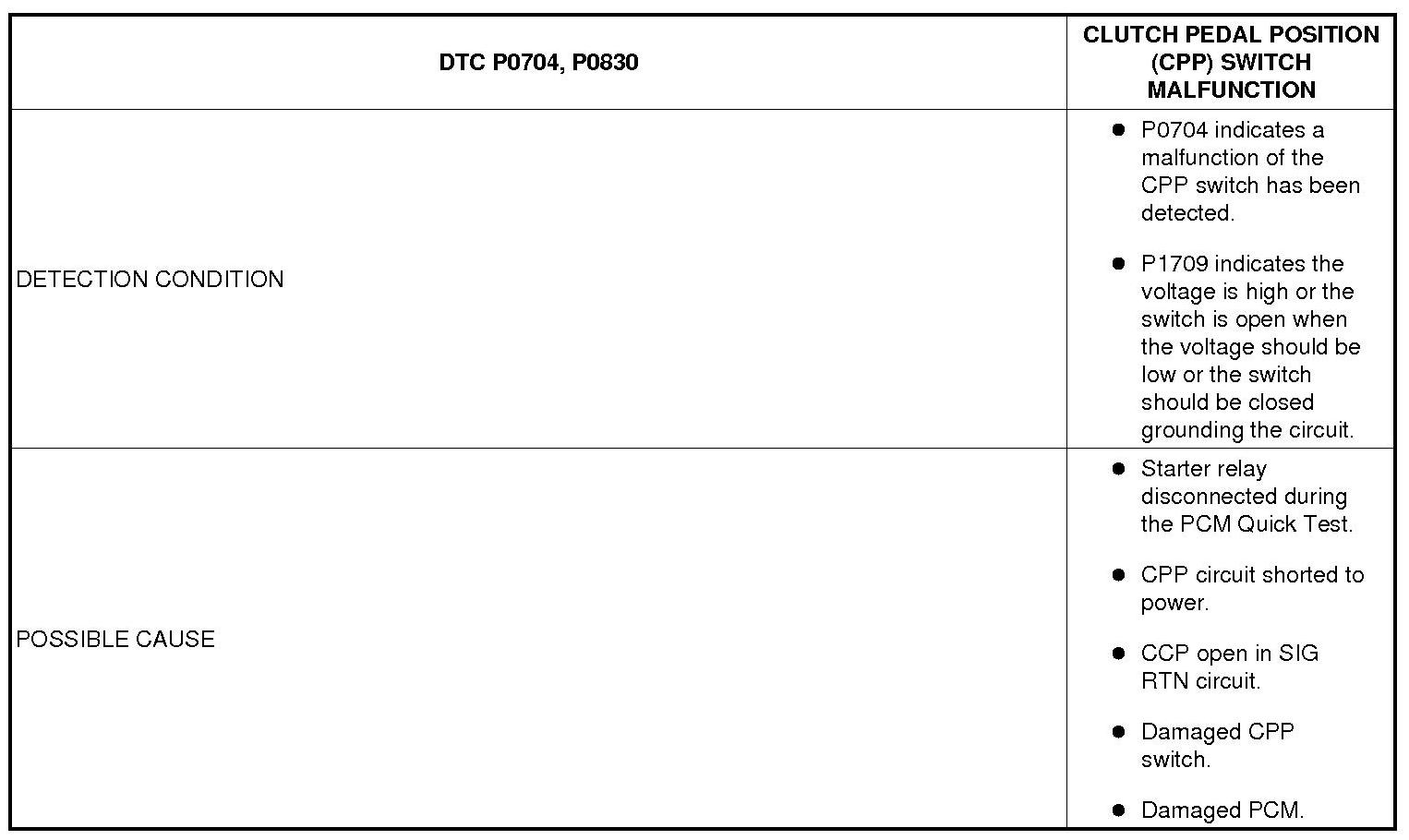 CLUTCH PEDAL POSITION (CPP) SWITCH MALFUNCTION