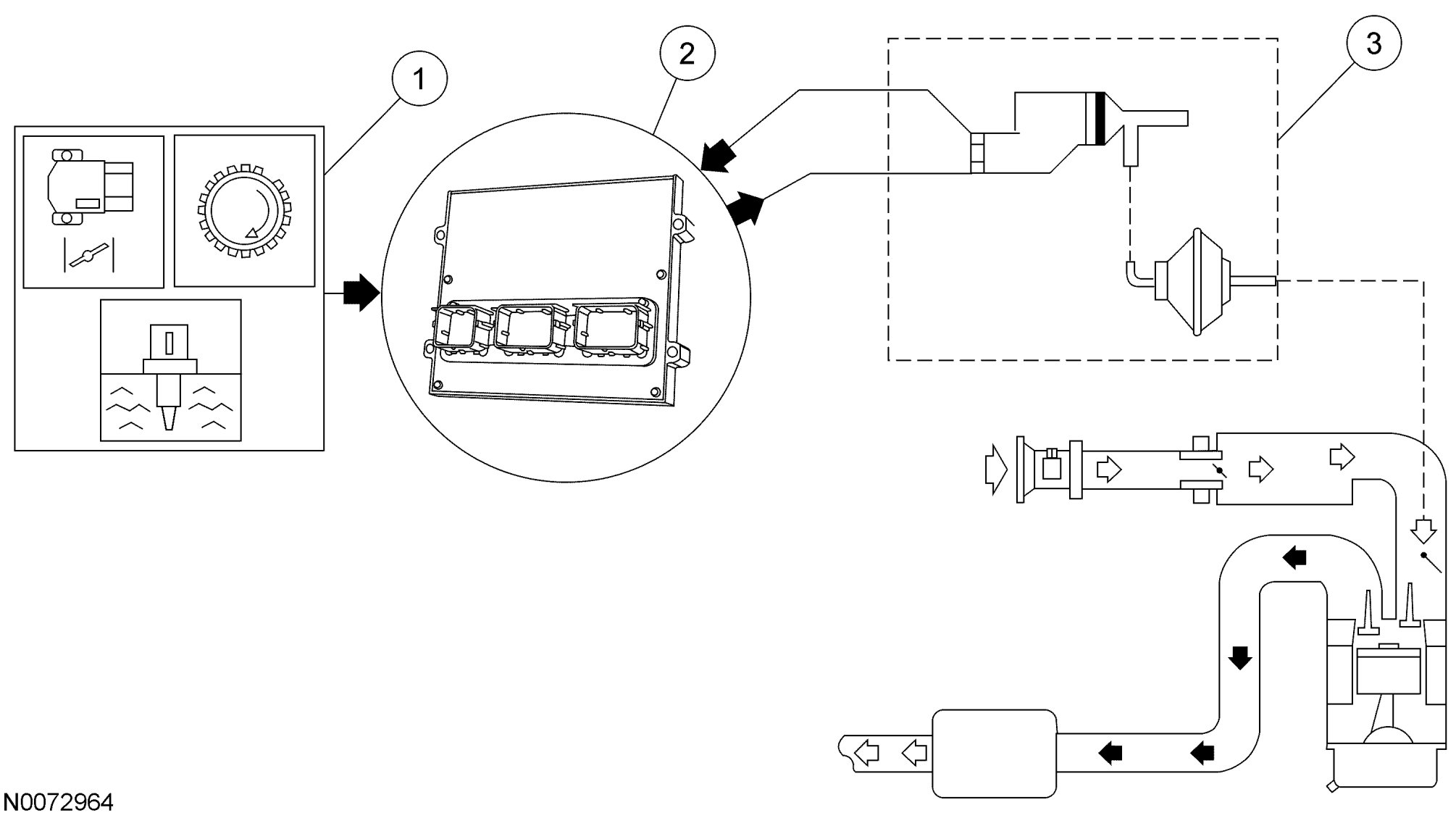The quick test checks the integrity and function of the electronic engine control (EEC) system and outputs the test results when requested by the scan tool. The quick test also provides a quick check of the powertrain control system, and is usually carried out at the start of each diagnostic procedure with all accessories off. The quick test is also carried out at the end of most pinpoint tests for verification of the repair and to make sure no other concerns are incurred while repairing a previous concern. A system pass is displayed when no DTCs are output and a scan tool communication error does not exist. System pass means that hardware monitored by the PCM is functioning within the normal operating limits. Only a system pass, a DTC, or an incomplete on board diagnostic (OBD) drive cycle (P1000) is displayed.