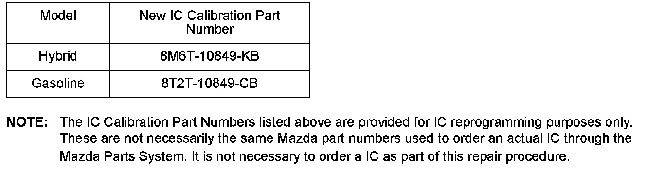 ^ Please be aware that IC calibration part numbers and file names listed in any Service Bulletin may change due to future releases of IDS software, and additional revisions made to those calibrations for service related concerns.