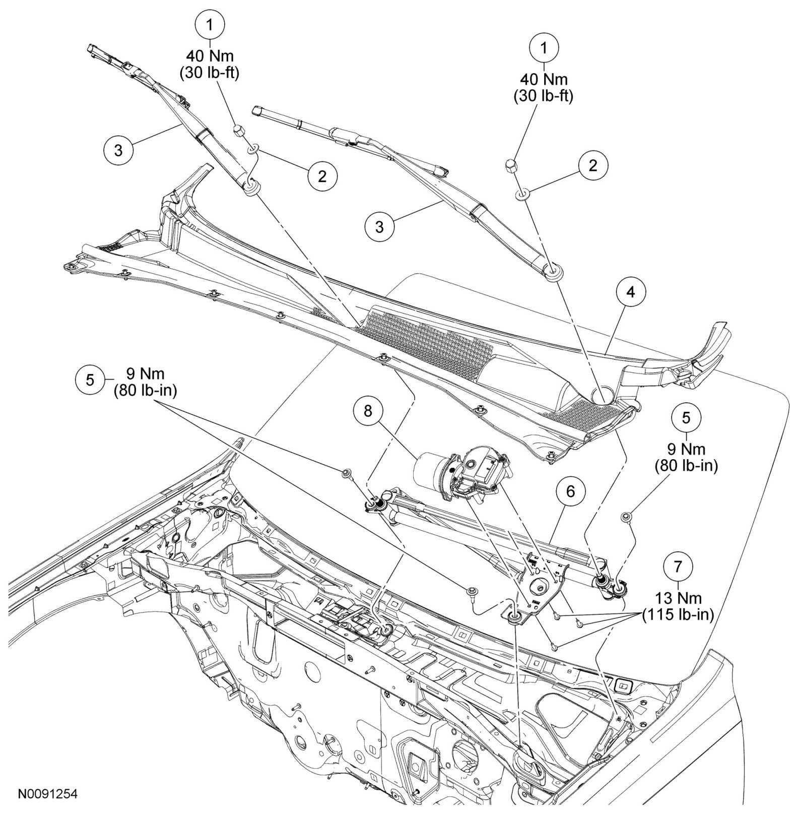 Wiper And Washer System - Exploded View, Front