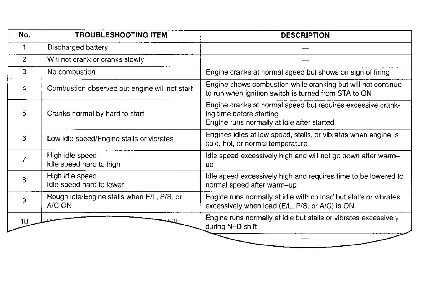 - Although inspections and adjustments are performed according to the reference column procedures, if the cause of the malfunction is discovered during basic inspection, continue the procedures as indicated in the remarks column.